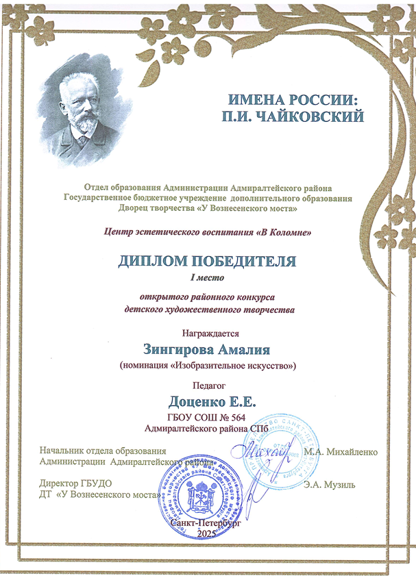 1 место Зингирова Амалия, 8А класс, педагог Доценко Екатерина Евгеньевна