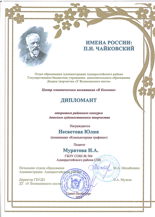Дипломант Несветова Юлия, 4А класс, педагог Муратова Инна Адольфовна