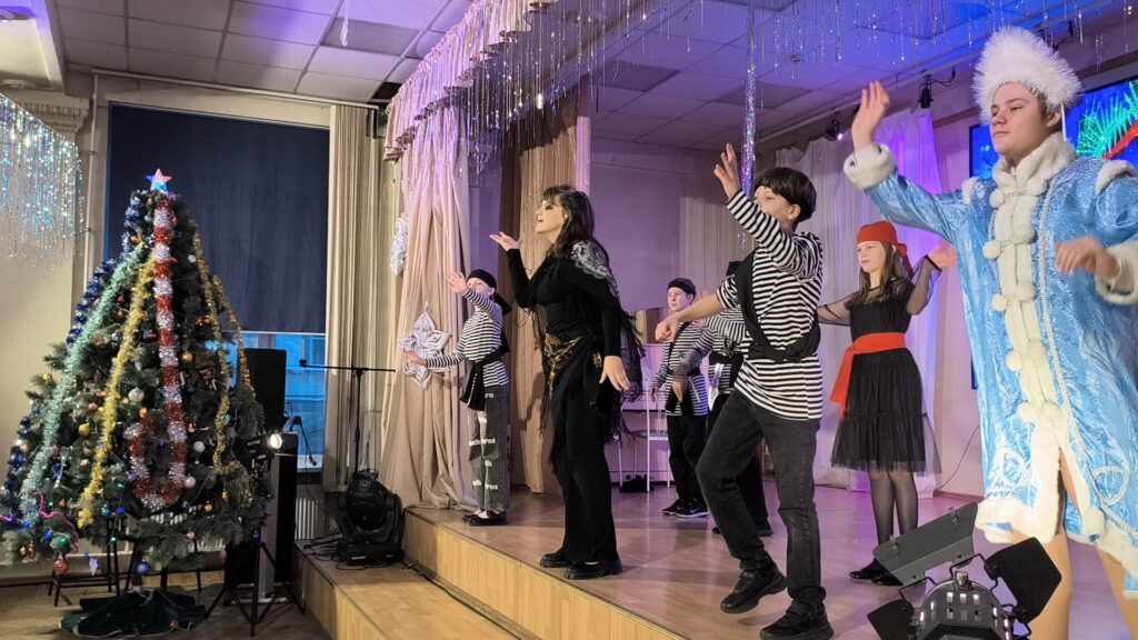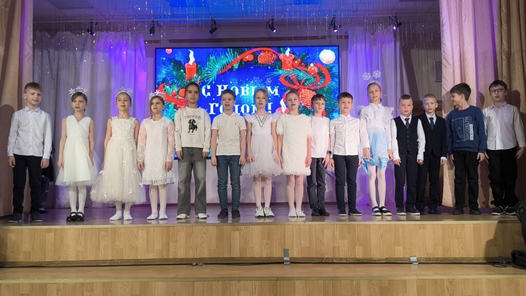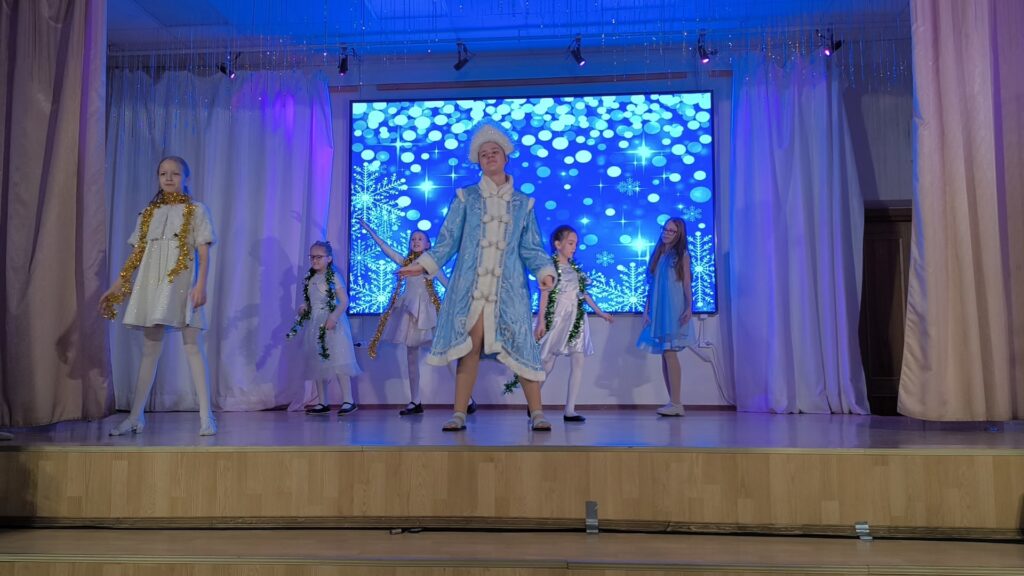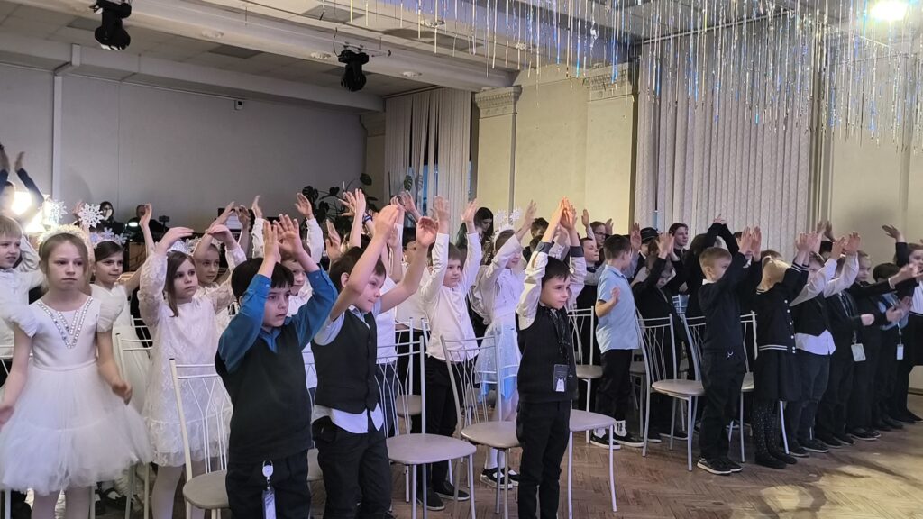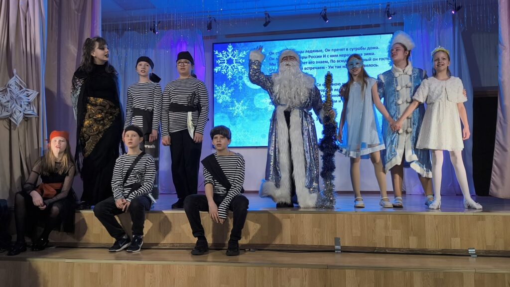 Ведущие играли со зрителями в игры и пели новогодние песни. Классы подготовили номера по сюжету представления.